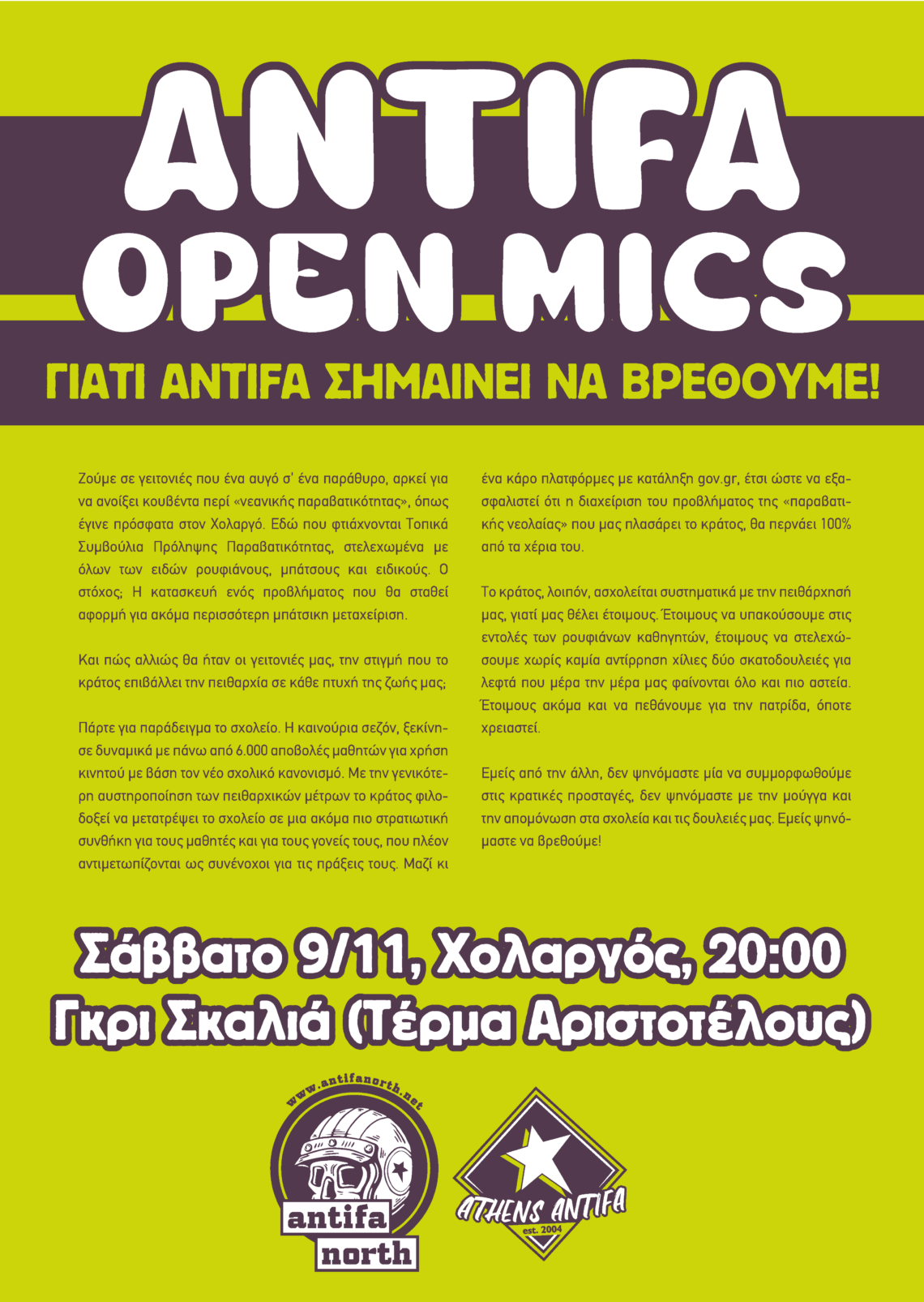 Ζούμε σε γειτονιές που ένα αυγό σ’ ένα παράθυρο, αρκεί για να ανοίξει κουβέντα περί «νεανικής παραβατικότητας», όπως έγινε πρόσφατα στον Χολαργό. Εδώ που φτιάχνονται Τοπικά Συμβούλια Πρόληψης Παραβατικότητας, στελεχωμένα με όλων των ειδών ρουφιάνους, μπάτσους και ειδικούς. Ο στόχος; Η κατασκευή ενός προβλήματος που θα σταθεί αφορμή για ακόμα περισσότερη μπάτσικη μεταχείριση.
