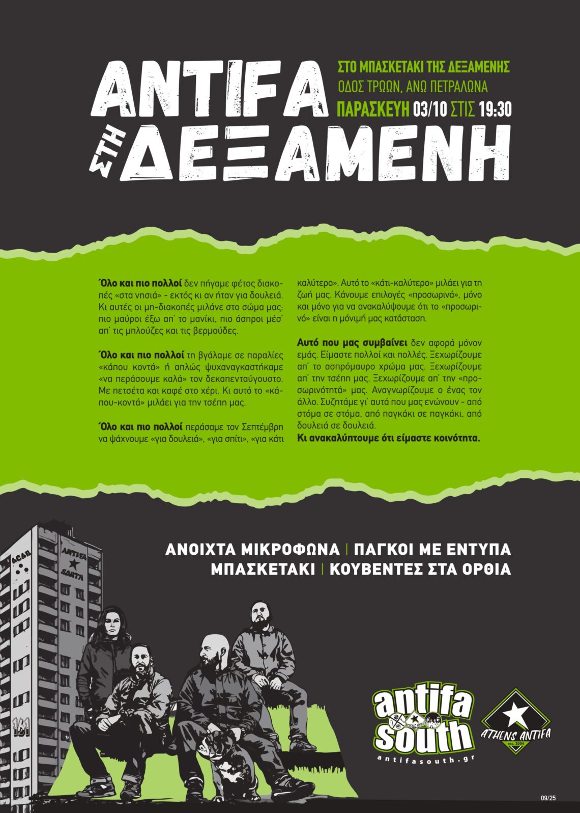 Παρασκευή 03/10/2025 στις 19:30 στο μπασκετάκι της Δεξαμενής, οδός Τρώων, άνω Πετράλωνα