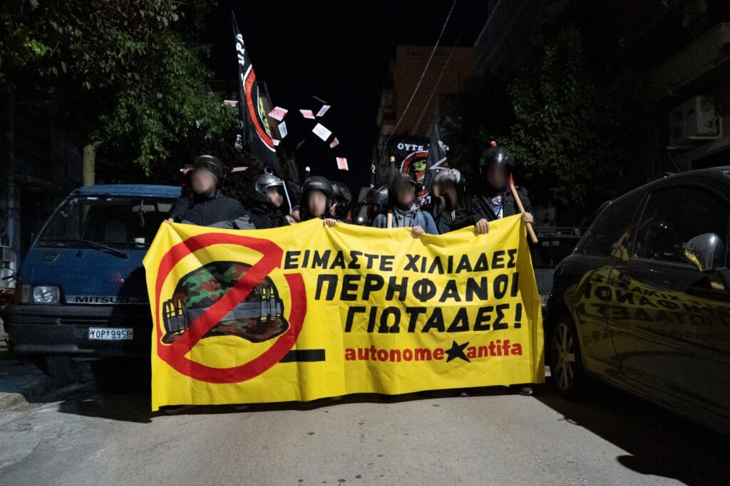 Τα πλάσματα της οδού Αθηνάς μας κοιτούν αποσβολωμένα. Δεν προβλέπεται να είμαστε εδώ που είμαστε – στον εκπολιτισμένο Κορυδαλλό. Δεν προβλέπεται να λέμε αυτά που λέμε – σκατά στο στρατό. Δεν προβλέπεται να στεκόμαστε όπως στεκόμαστε – όλες μαζί αλυσίδες. Δεν προβλέπεται η τεχνοπολιτική βία της διαδρομής Αιγάλεω – Κορυδαλλός – οδός Αθηνάς να επιστραφεί στον αποστολέα.