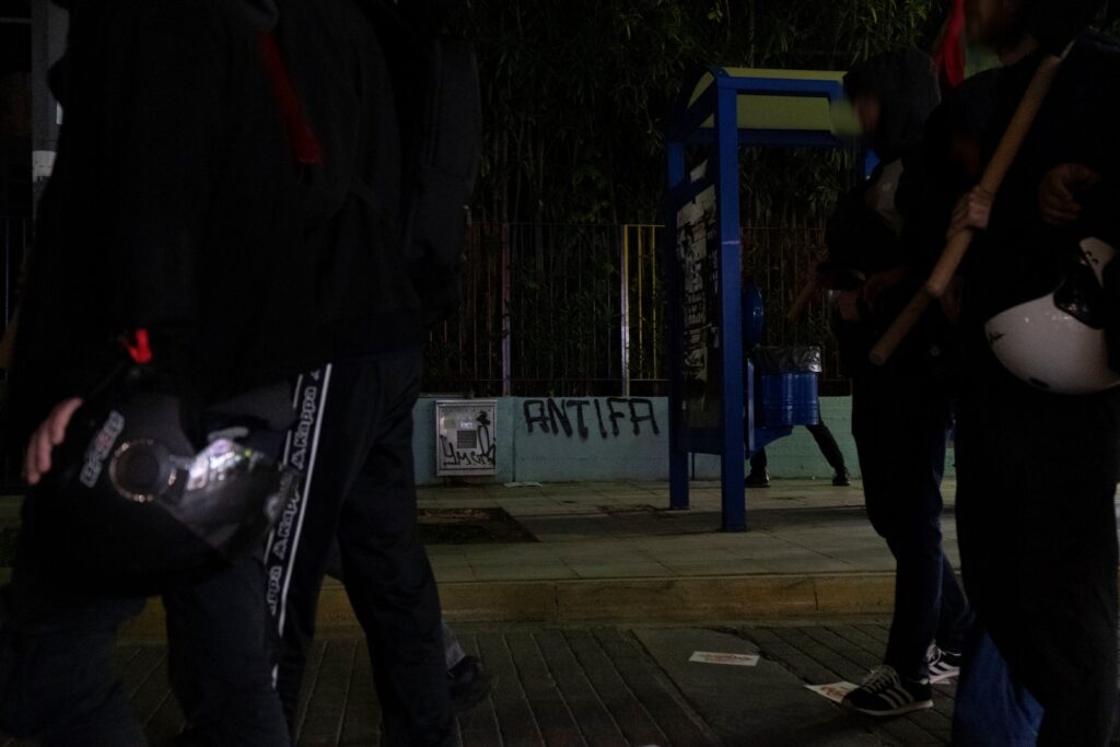 Όμως, αν επιμένεις, επιστρέφεται. Πίσω στην πλατεία Κορυδαλλού – όχι ινκόγκνιτο, we are antifa. Ο μπατσοσωλήνας – τώρα πολύ φιλικότερος. Οι μπάτσοι άφαντοι. Ούτε μηχανόμπατσοι, ούτε μετρόμπατσοι – καλά πληροφορημένοι όλοι τους. Οι ελεγκτές απληροφόρητοι – βλέπουν τις δύο πρώτες από εμάς να κρατάνε τις γκιλοτίνες ανοικτές και ορμάνε. Βλέπουν τους υπόλοιπους που ακολουθούμε και αντιστρέφουν πορεία. Ένας παραπατάει.