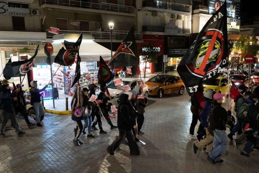 Μπατσοσωλήνας τέρμα. Εμείς ακόμη ινκόγκνιτο – μένει να βρούμε την αφετηρία της διαδήλωσης. Δηλαδή να περπατήσουμε στον κεντρικό εμπορικό δρόμο του Κορυδαλλού. Οδός Αθηνάς – μόνο εμπορεύματα και καταναλωτές για κανά χιλιόμετρο. Μόνο ανταλλαγή χρήμα με εμπόρευμα. Μόνο χαμόγελα μαγαζάτορα. Μόνο πληθυντικοί της έλλειψης εμπιστοσύνης.