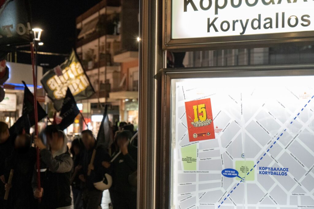 Μετρό Αιγάλεω – Κορυδαλλός. Οι ένοπλοι κοιτάνε. Δεν τους κοιτάζει κανείς. Όλοι μούγκα. Ο μπατσοσωλήνας στριγγλίζει χαρούμενος – μετατρέπει τα λεπτά της σιωπής μας σε απόσταση. Οι ομιλίες ξαναρχίζουν δειλά μόνο όταν οι κυλιόμενες μας ξεράσουν στην πλατεία Κορυδαλλού. Κι άλλοι ένοπλοι μπάστακες. Μηχανόμπατσοι και μετρόμπατσοι που έχουν μπλέξει αρμοδιότητες. Ψάχνονται να ψαχουλέψουν περαστικούς.
