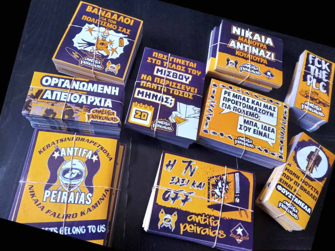 Αν θες λοιπόν να πάρεις κι εσύ τα καινούργια αυτοκόλλητα του Antifa Peiraias στείλε μας μέηλ στο [email protected] Και ξεκίνα να ξεκολλάς τα χαρτάκια και να τεντώνεσαι για να φτάσεις την ταμπέλα!