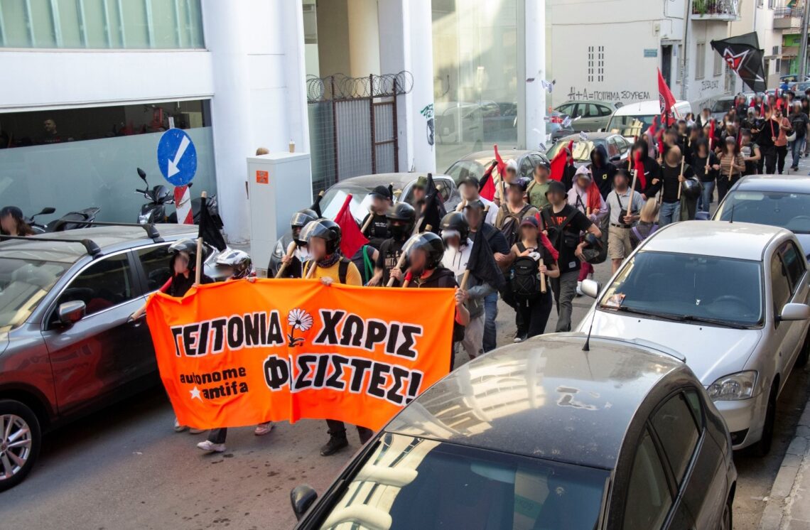 Πέμπτη απόγευμα φτάνουμε στην πλατεία του Κολωνού. Η σύνθεση της πλατείας η εξής· από την μία, παρέα Αλβανών, από την άλλη, οικογένειες τσιγγάνων, στην μέση μία οικογένεια αριστερών. «Τι είναι αυτοί μαμά;», «Αυτοί παιδί μου είναι antifa, έχουν έρθει επειδή εδώ έχει φασίστες». Από το ψηφιδωτό αυτό βέβαια μόνο οι φασίστες έλειπαν. Τα χίλια πρόσωπα της πολυεθνικής εργατικής τάξης, χαρούμενα που μας έβλεπαν όσο χαρούμενοι και εμείς που βλέπαμε αυτούς. Στολίζουμε την πλατεία με τα ρολά μας. Ο τοίχος γράφει «ANTIFA HOODS». Δεν υπάρχει κάτι πιο ταιριαστό για τον Κολωνό. Μαζεύουμε και ξεκινάμε. Οι συζητήσεις δεν έλειπαν. «Τι είναι αυτό που μοιράζετε;» ρωτάει ο πιτσιρίκος, «Προκήρυξη antifa. Λέει γιατί δεν γουστάρουμε τους φασίστες και τους μπάτσους», «Μα καλά ποιος διάολο τους γουστάρει αυτούς;» όχι και παράλογη η απορία του. Ούτως ή άλλως το είπαν και κάτι τσιγγάνες έξω από ένα σπίτι «Εμείς εδώ είμαστε μαζί σας, όλες antifa!» και πως να μην είναι άλλωστε. Ξέρουν από πρώτο χέρι την βία του να μην έχεις φράγκο. Έχουν φάει με το κουτάλι τον ρατσισμό της ελληνικής κοινωνίας. Για αυτές η τραμπούκα των μπάτσων και των ρουφιάνων τους είναι καθημερινότητα. Τόσο που οι αρνήσεις και η δυσπιστία για το κράτος έχουν γίνει για αυτούς ταυτόσημες με την ύπαρξη.