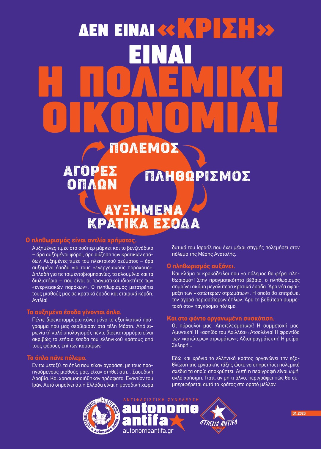 ANTIFA SPEAKING Δεν είναι «κρίση». Είναι η πολεμική οικονομία! // 04.2026 by Autonome Antifa 5 Απριλίου 2026 ... Read moreDetails
