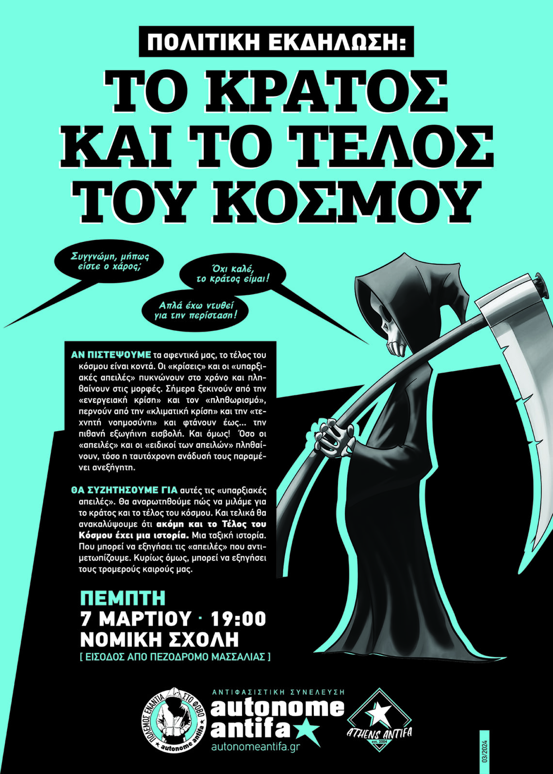 Πολιτική Εκδήλωση: Το Κράτος Και το Τέλος του Κόσμου // 07.03.2024 // Νομική