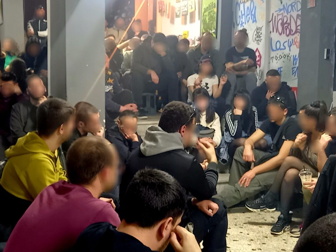 Η πολυμελής παρέα ανηλίκων που εμφανίστηκε για να παρακολουθήσει την εκδήλωση ήταν ακριβώς αυτό που οι μπάτσικοι μηχανισμοί αποκαλούν «συμμορία ανηλίκων». Από τη σκοπιά των μπάτσων η δαιμονοποίηση των παιδιών με τα μαύρα τσαντάκια έχει βάση: με ευαισθησία άνω του μετρίου, εθνική καταγωγή πιο ψηφιδωτή κι από μωσαϊκό, και υλική κατάσταση που δημιουργεί ζόρια πολύ πριν την ενηλικίωση, οι φουρνιές των μαυροφορεμένων νεαρών που ηγεμονεύουν στις εργατικές γειτονιές εγκληματοποιούνται δίχως αύριο, μέσα απ’ την αστυνομική επιτήρηση της αναπαραγωγής τους.